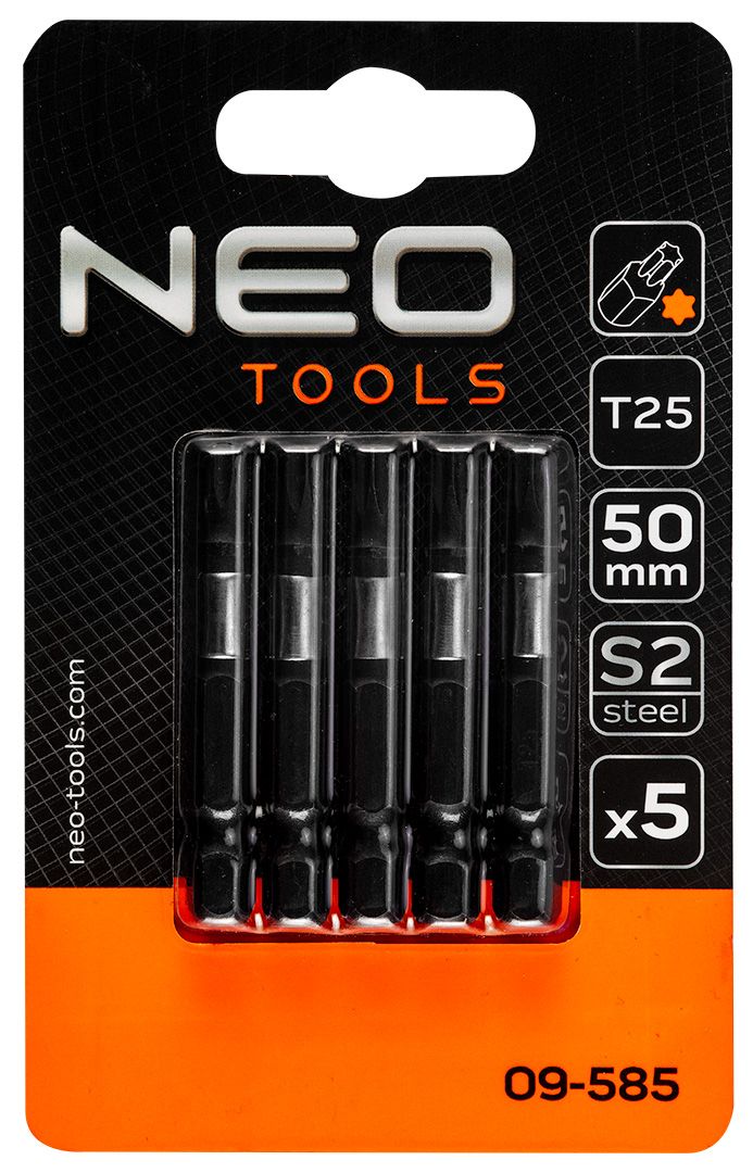 Set varfuri, biti, de impact, Torx, 1/4″, 5 buc, T25x50 mm, Neo