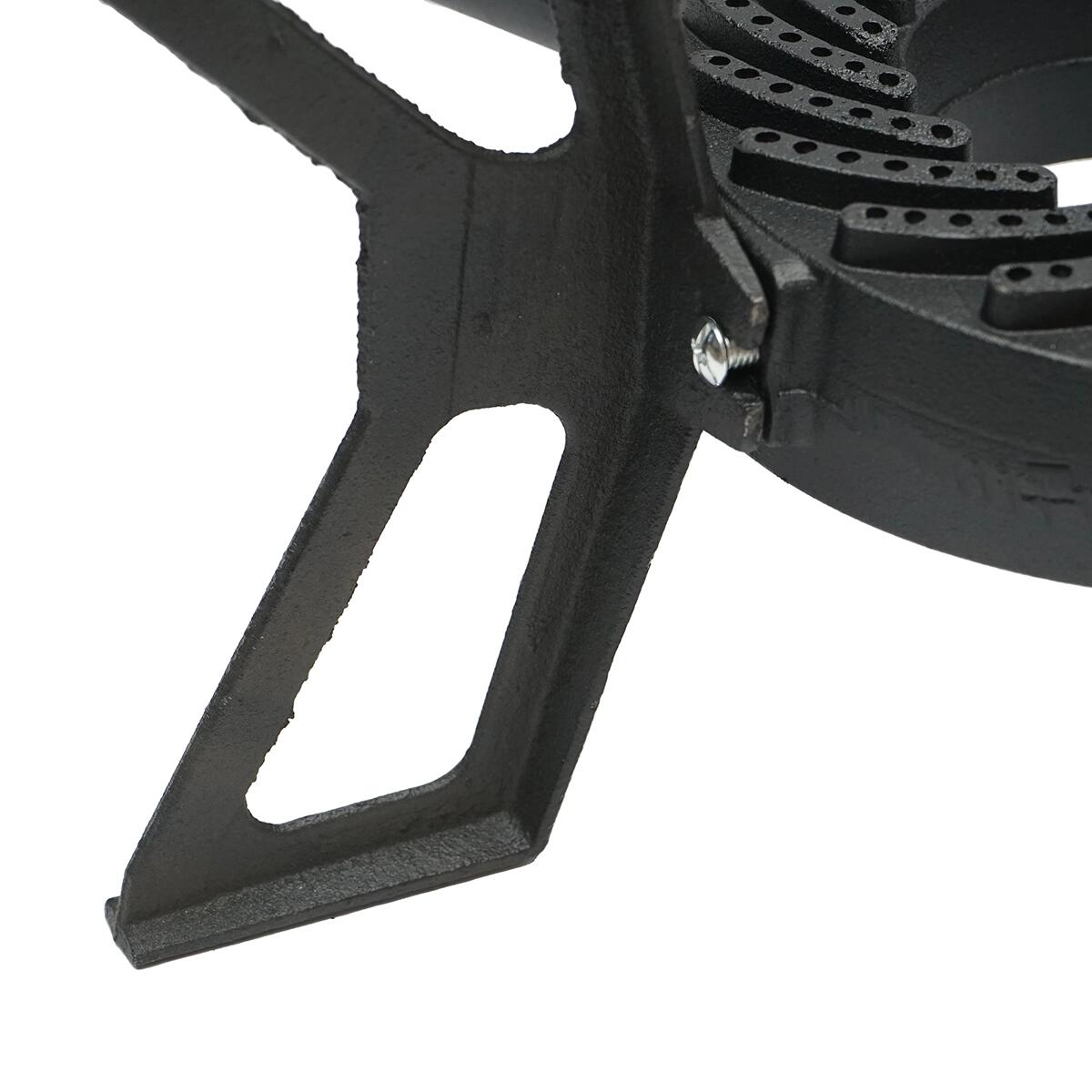 - Este extrem de robust si durabil. Fonta este un material foarte rezistent la uzura si la temperaturi ridicate, ceea ce face ca acest arzator sa fie o alegere excelenta pentru utilizari repetate si pe termen lung. De asemenea, fonta are o capacitate mare de a retine caldura, asigurand o distributie uniforma a acesteia pe suprafata vasului de gatit. Astfel, mancarea se gateste uniform, reducand riscul de ardere sau de gatire inegala.