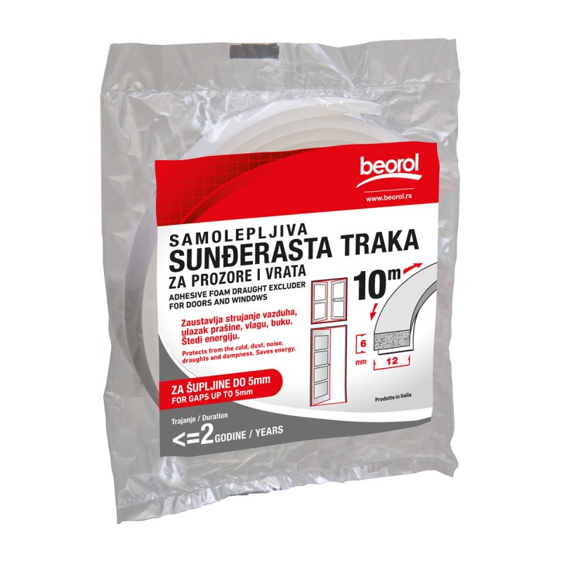 Banda de burete autoadezivă pentru ferestre si usi de servește la oprirea fluxului de aer, praf, umezeala, zgomot si economisind energie.