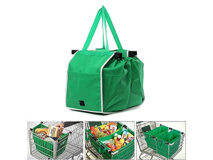 Set 2 genti tip cos pentru cumparaturi, Verk Group, cu agatatori, verde, 25x38x35 cm