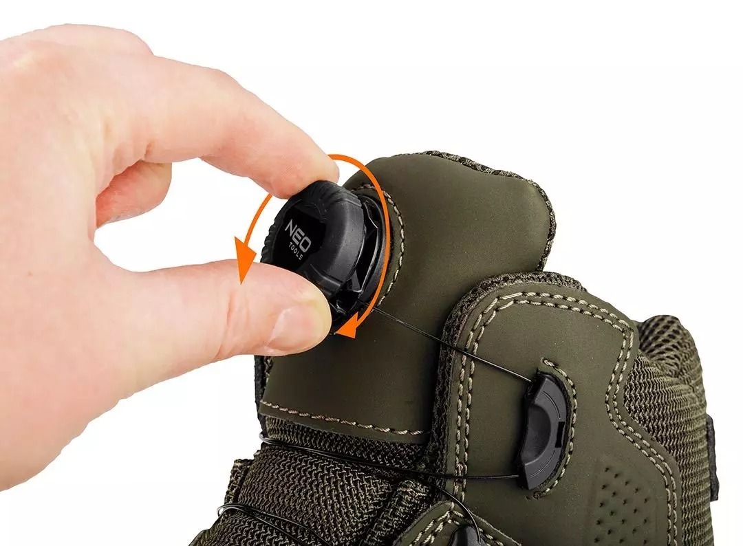 - Sistemul cu buton de blocare al sireturilor previne desfacerea in timpul muncii.