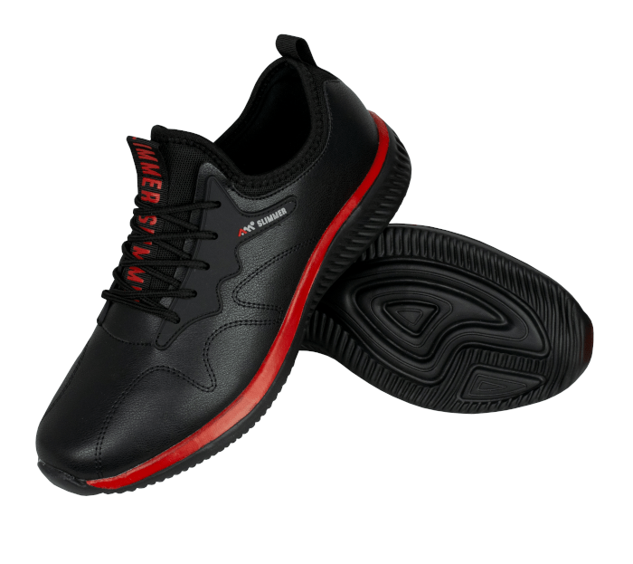 Pantofi casual, piele ecologica, talpa spuma Eva, negru si rosu, marime 37