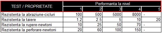 Rezultatele minime de testare necesare pentru a atinge diferite niveluri de performanta sunt prezentate in tabelul de mai jos: