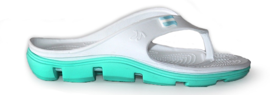Papuci/slapi pentru femei, cu bareta intre degete, spuma EVA, alb si turcoaz, marimea 40, Jose Amorales