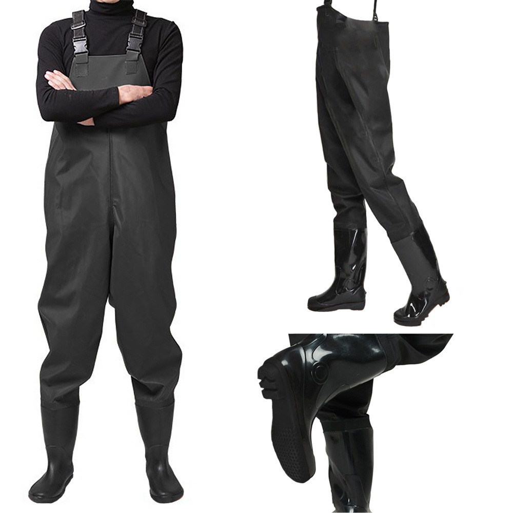 Pantaloni, cu pieptar, salopeta, pentru pescuit, cu bretele ajustabile, cizme, marimea 44, negru, Verk Group