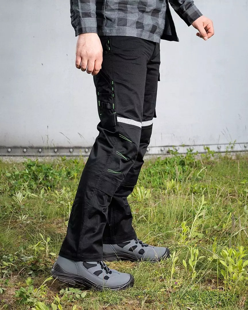 - Lucrari in depozit si logistica – imprimeul reflectorizant deasupra genunchiului ofera un aspect profesional si o vizibilitate sporita.