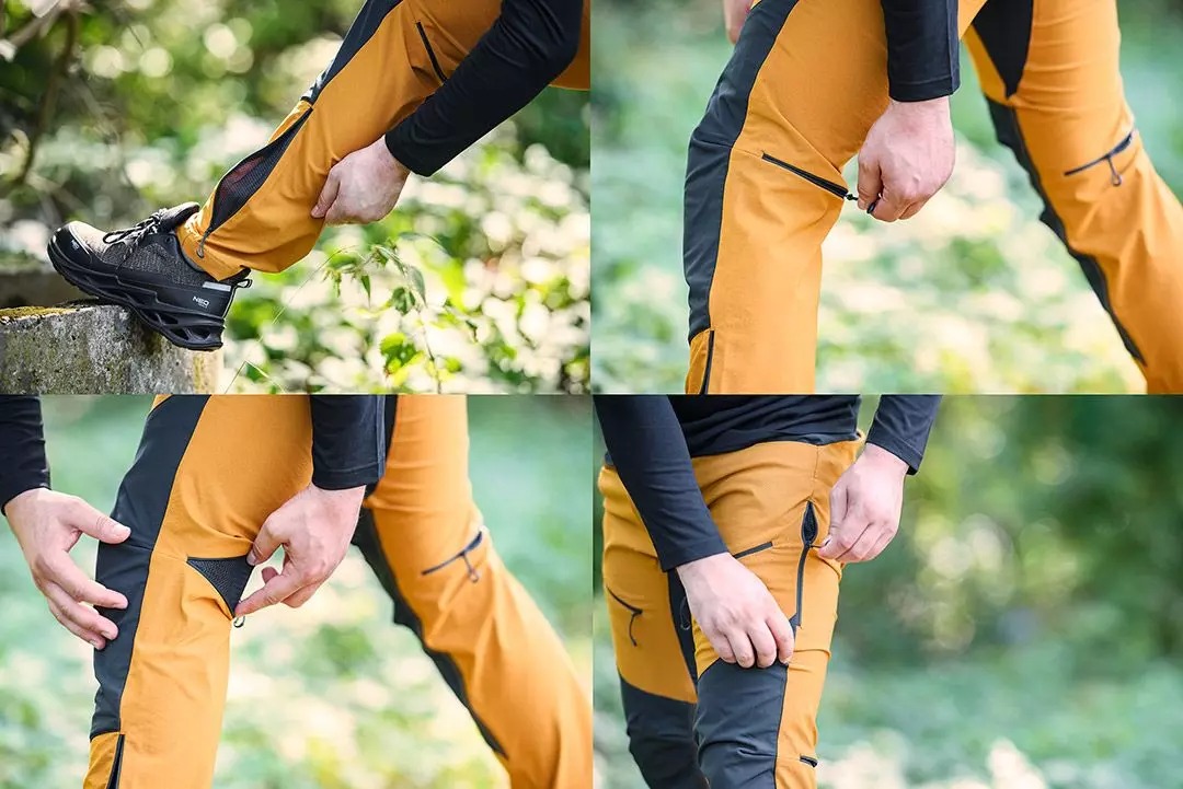 - Partea din spate a pantalonilor are buzunare plate cu pense suplimentare precum si ventilatie in cusatura de sub genunchi, care asigura o circulatie si mai buna a aerului.