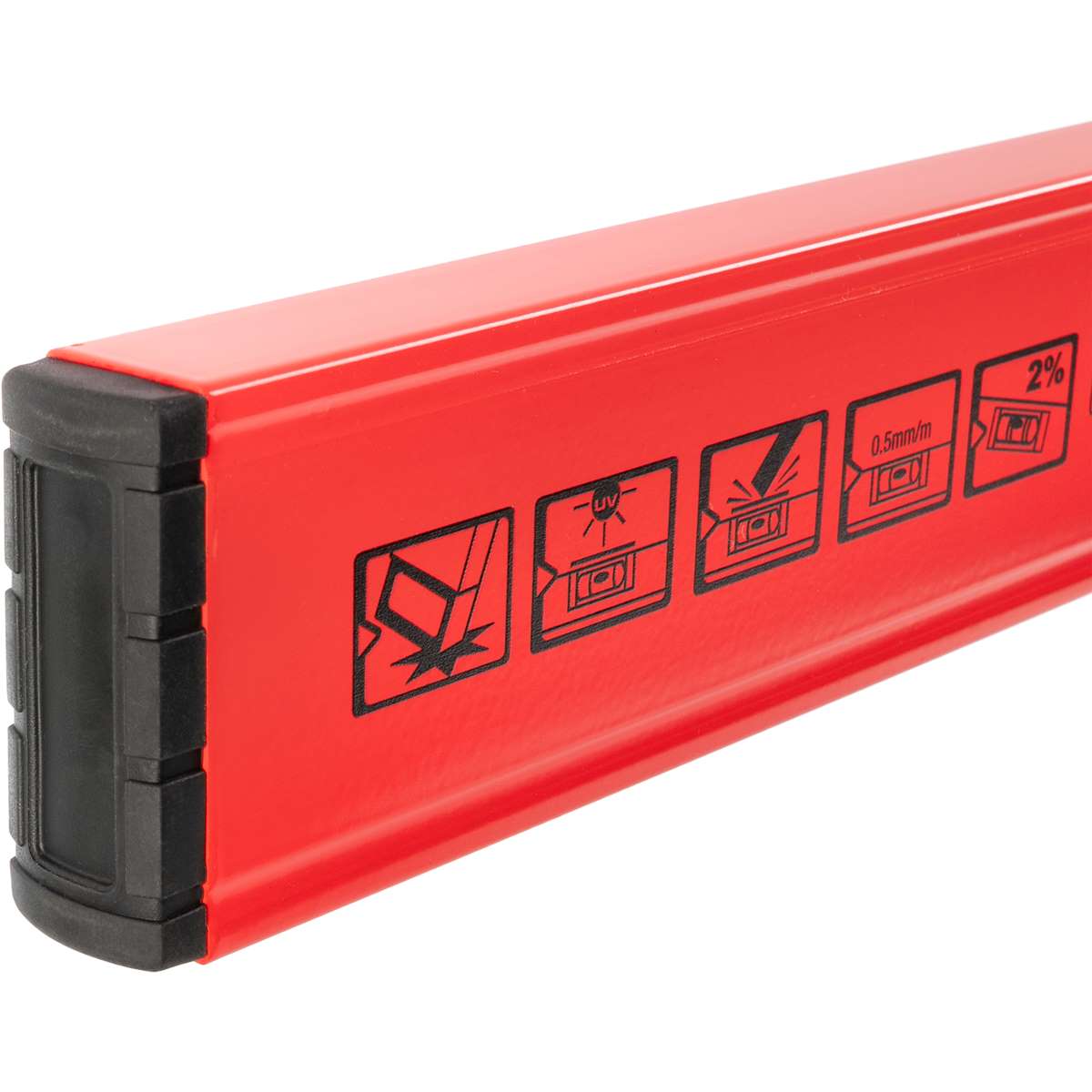 - Ambele parti ale nivelei sunt asigurate cu elemente din plastic care absorb socurile si impacturile.