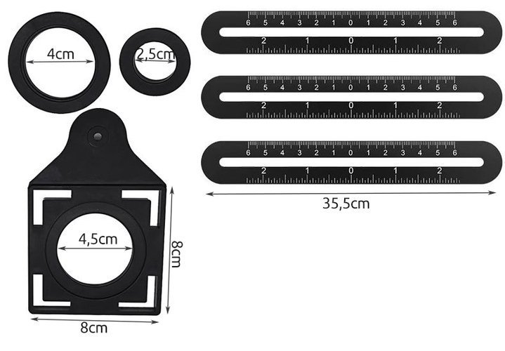Sablon pentru marcare si gaurire gresie si faianta, 3 laturi, masurare unghiuri, 3×300 mm