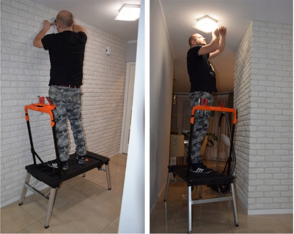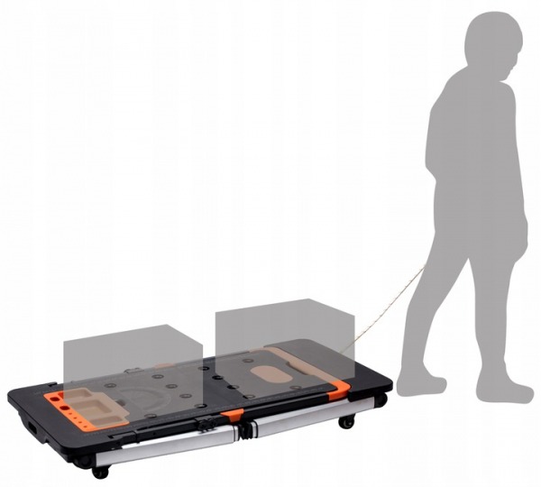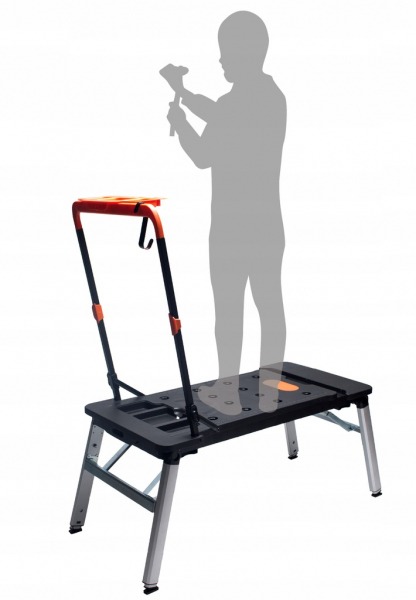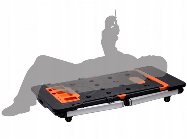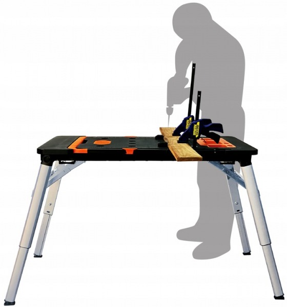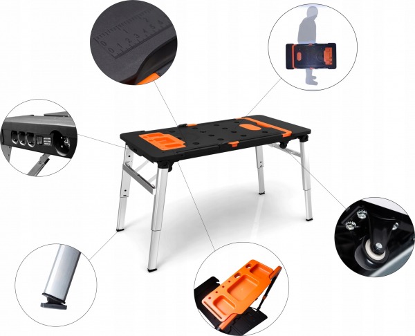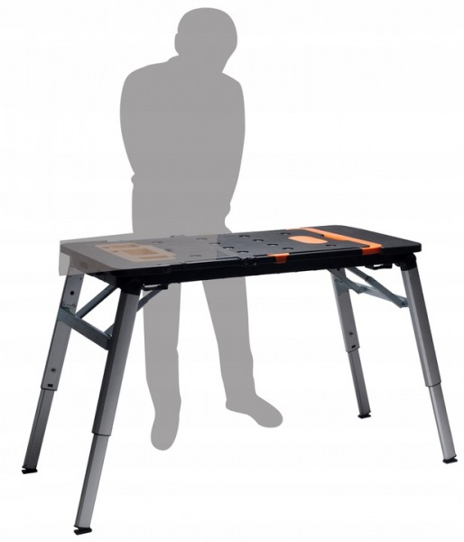 Masa cu suprafață mare de lucru care ușurează tăierea și găurirea. Pe lateral există 3 prize incorporate. Poate fi folosit ca schela stabilă sau platformă de lucru. Setul include roți, datorită cărora masa se transformă într-un cărucior. Acesta poate fi folosita în depozite, magazine, ateliere și peste tot unde este nevoie să transportați diverse tipuri de mărfuri. De asemenea, are funcția de canapea pentru utilizare în ateliere de mașini și reparații, servicii auto și, de asemenea, printre pasionații de bricolaj. Poate fi pliat într-o valiză, ușor de depozitat și transportat.