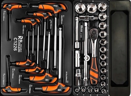 - Set capete tubulare scurte cu cheie, sertar TIP A (385×150 mm) pentru dulap mobil, 1/2", 8-32 mm, 25 elemente, RICHMANN EXCLUSIVE (C1205)
