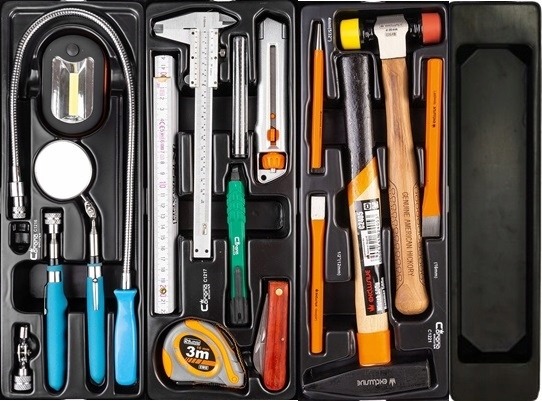 - Set tinichigerie, ciocan si dalti, sertar TIP A (385×150 mm) pentru dulap mobil, 5 elemente, RICHMANN EXCLUSIVE (C1221)