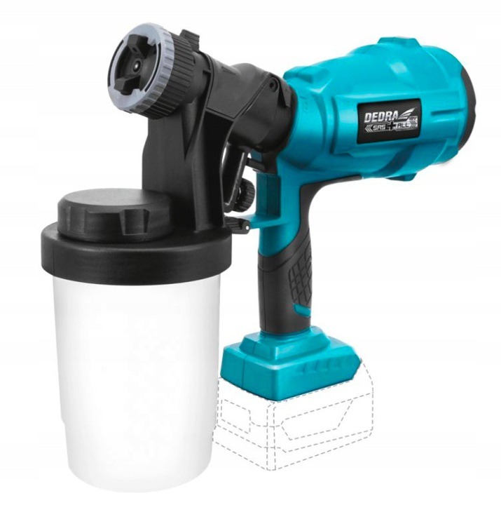 Pistol de vopsit, 18 V, Li-ion (acumulator neinclus), 900 ml, 2.0-2.5 mm, SAS+ALL, Dedra