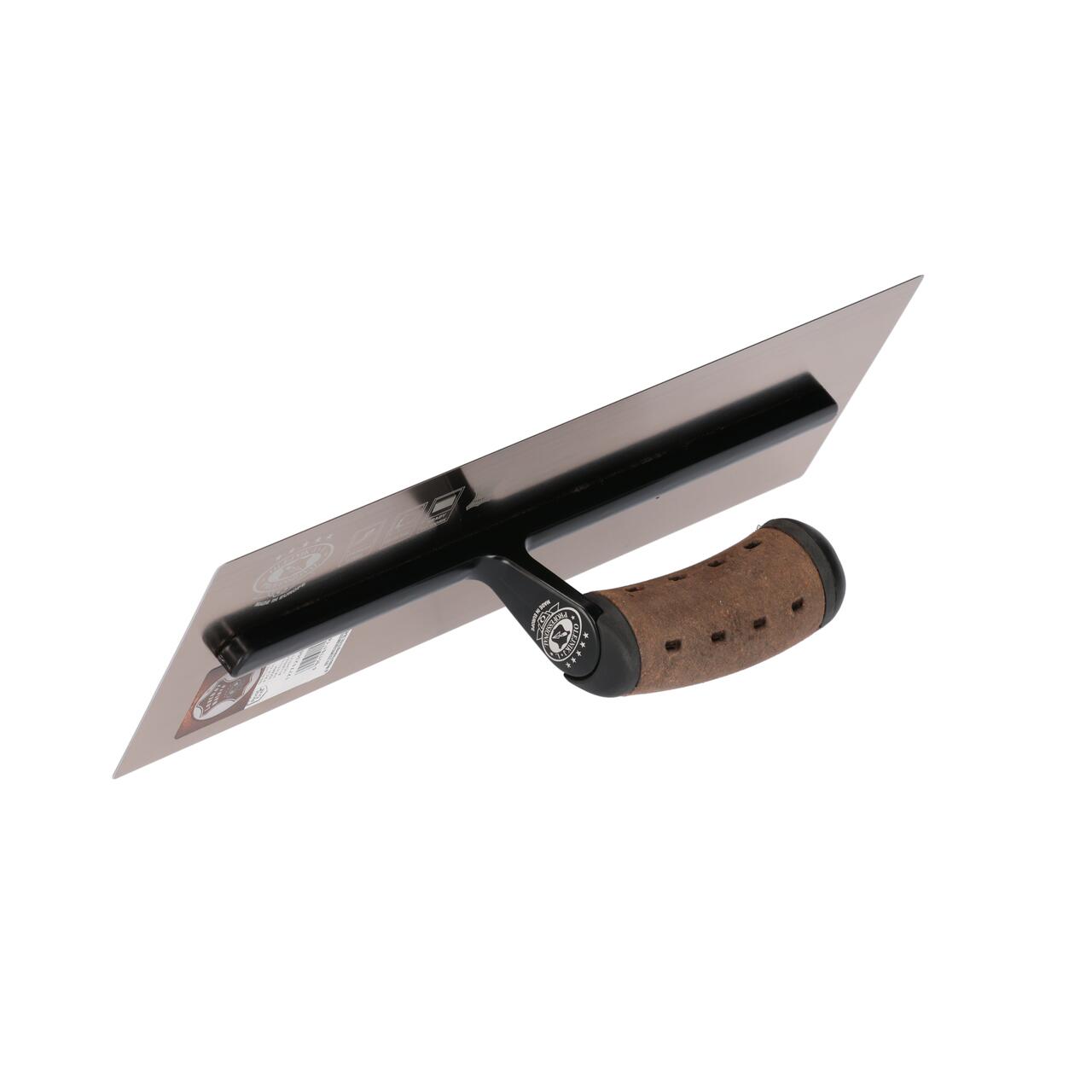 Gletiera inox, intarita, Premium Gold, 35.6×12 cm x 0.65 mm, maner piele naturala, Olejnik