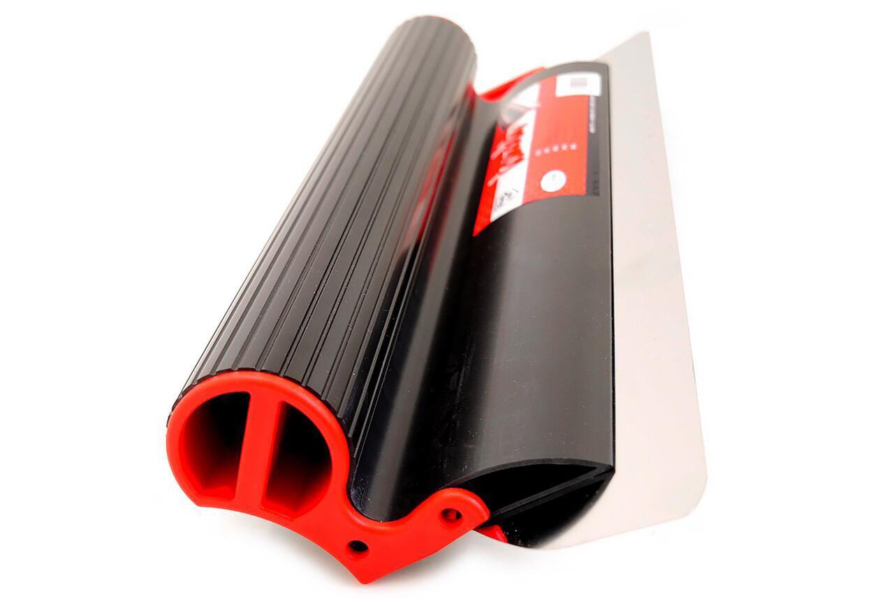 - Flexibilitatea lamei foarte subtiri, confectionate din inox de cea mai buna calitate, permite nivelarea materialelor de umplere si de finisare, permitand aplicarea materialului intr-un strat foarte subtire. Netezeste perfect suprafata care este, practic, gata de amorsare si vopsire, oferind precizie si cel mai fin finisaj, eliminand practic slefuirea. Prin structura flexibila a lamei, aceasta pastreaza materialul pe suprafata de lucru si pe lama, minimalizand astfel risipa de material si nevoia de curatare.