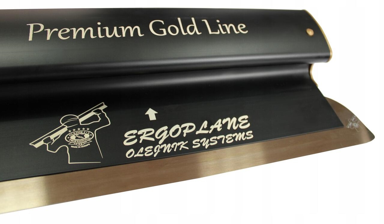 Set 4 gletiere profesionale, lama inox 0.3 mm, Premium Gold, 25, 40, 60, 80 cm, rola gletuit, geanta, Ergoplane, Olejnik