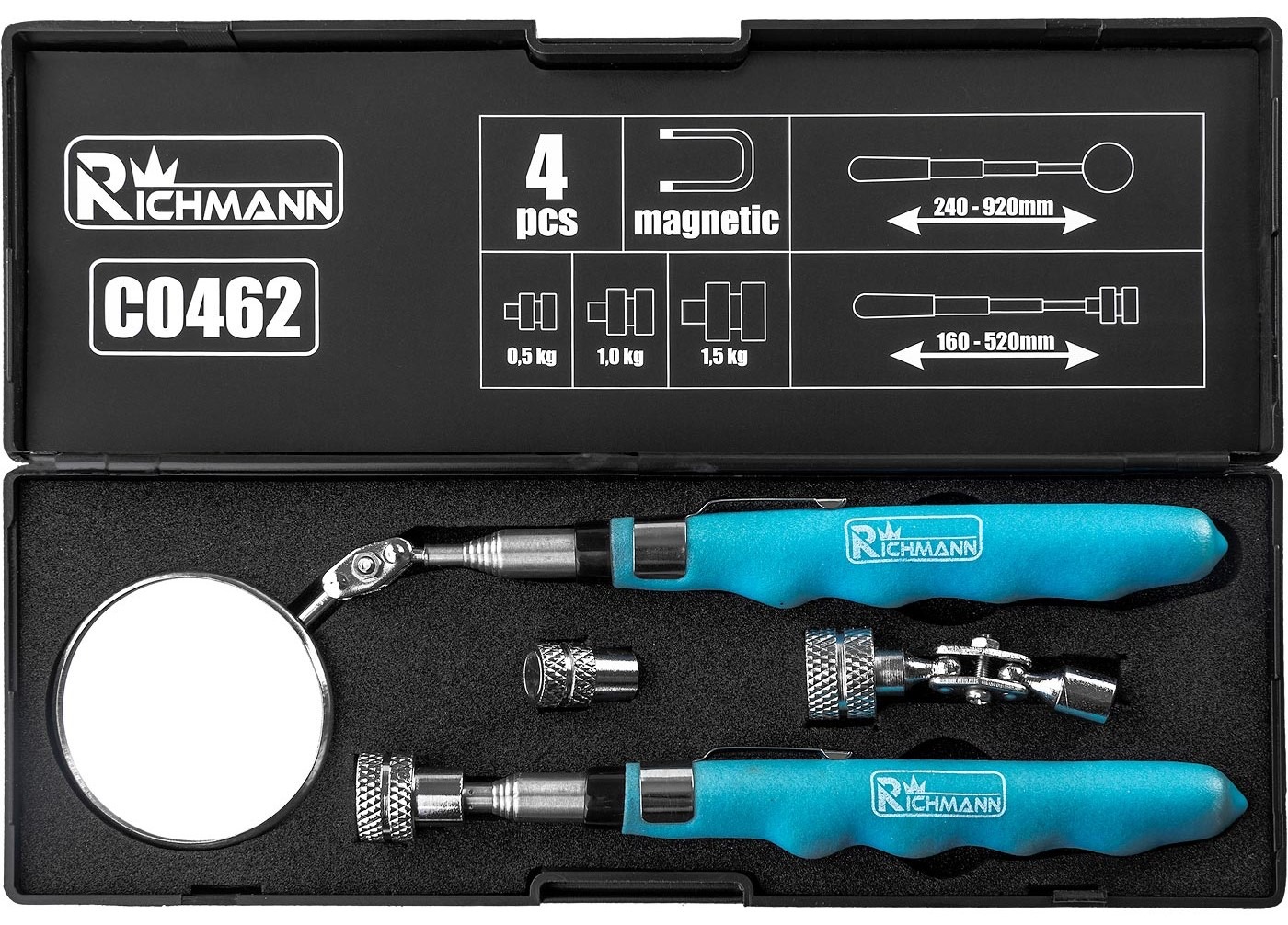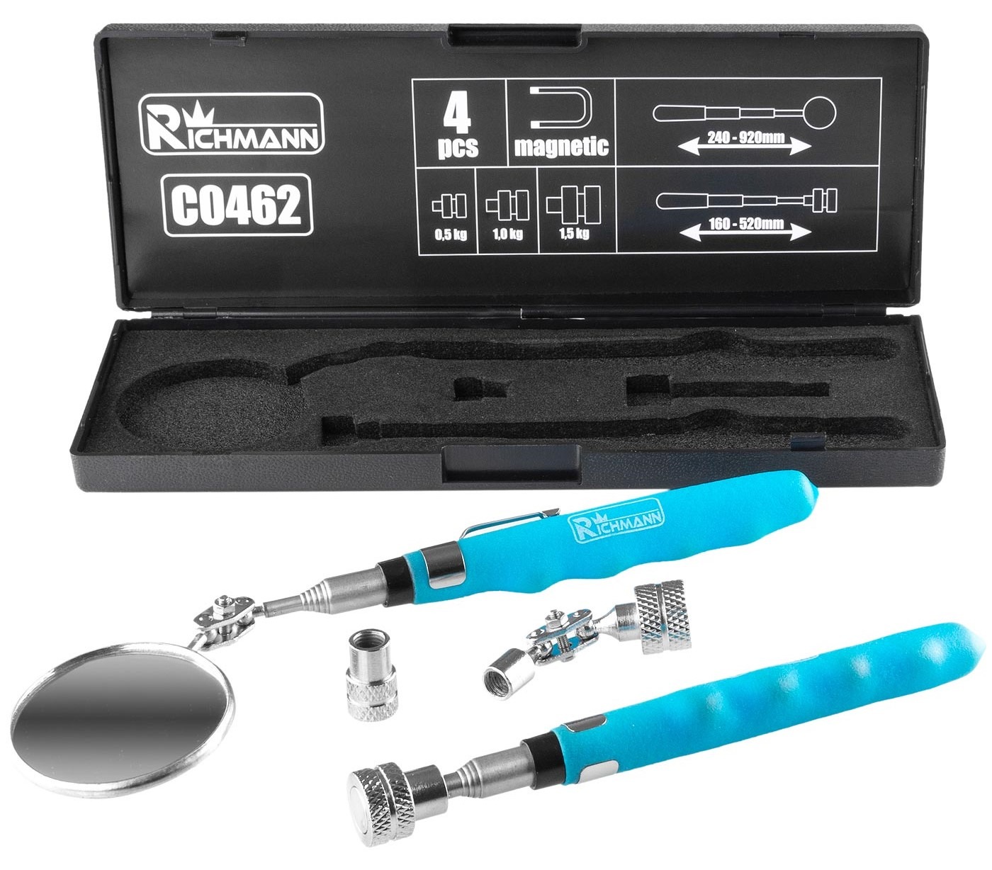 Oglinda de inspectie va permite sa controlati locuri ascunse, iar elementul de prindere magnetic este folosit pentru a extrage obiecte metalice mici, ascunse.