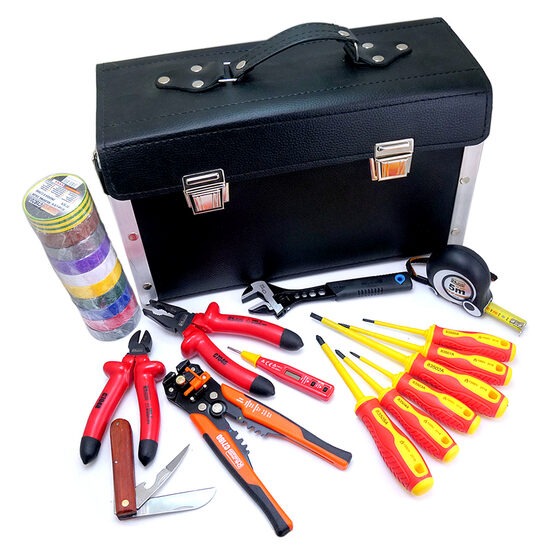Trusa 14 scule pentru electrician 1000V + geanta din piele transport si depozitare, Richmann Exclusive