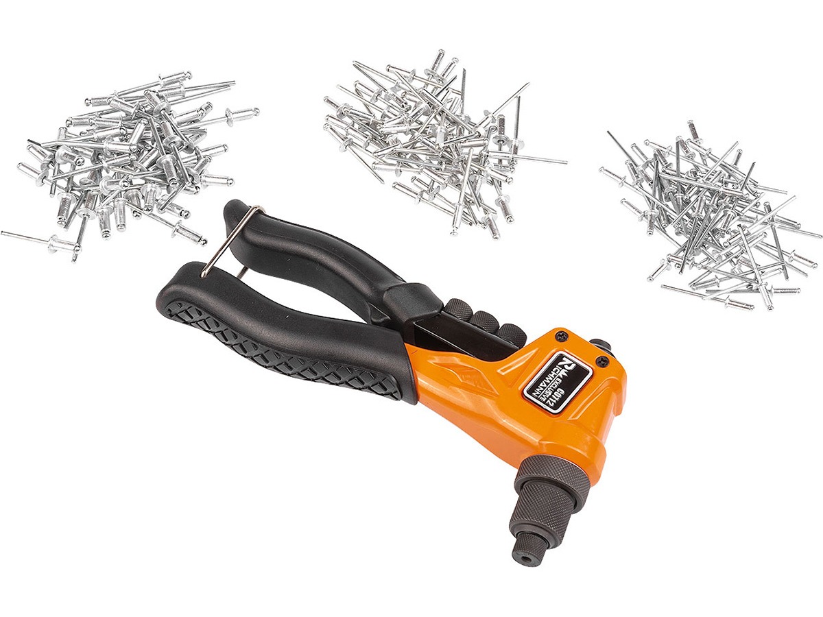 Cleste nituri, sertar TIP A (385×150 mm) pentru dulap mobil, 3.2, 4, 4.8 x 11 mm, 1 buc cleste + rezerve nituri (150 buc/3 dimensiuni), RICHMANN EXCLUSIVE