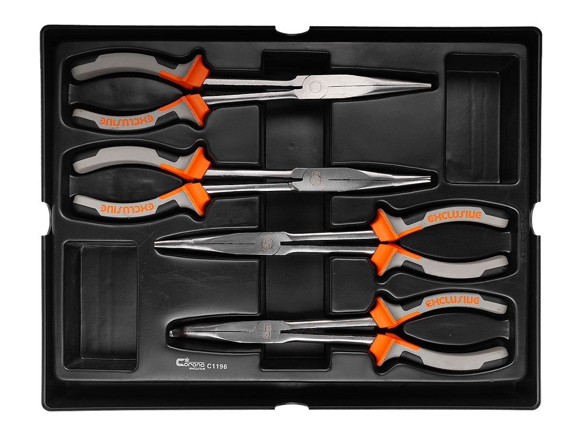Setul de clesti este fabricat din material de inalta calitate, maner ergonomic antiderapant, otel crom-vanadiu (Cr-V), cromate pentru prevenirea coroziunii, lustruite pentru o curatare usoara, destinat profesionistilor.