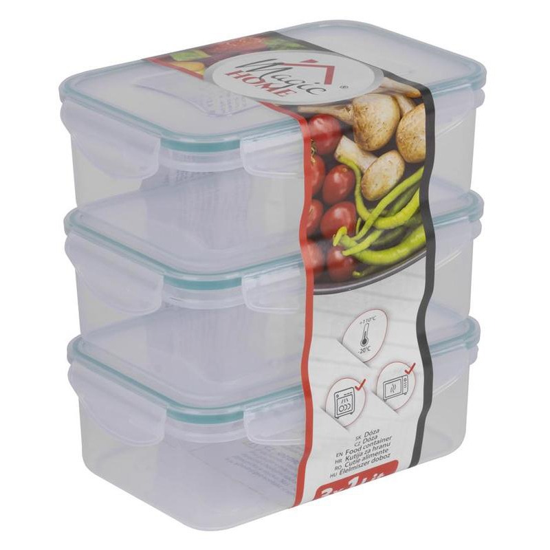 Cutie/caserola alimente, dreptunghiulara, plastic, etansa, albastru, set 3 buc, 3×1 L, MagicHome