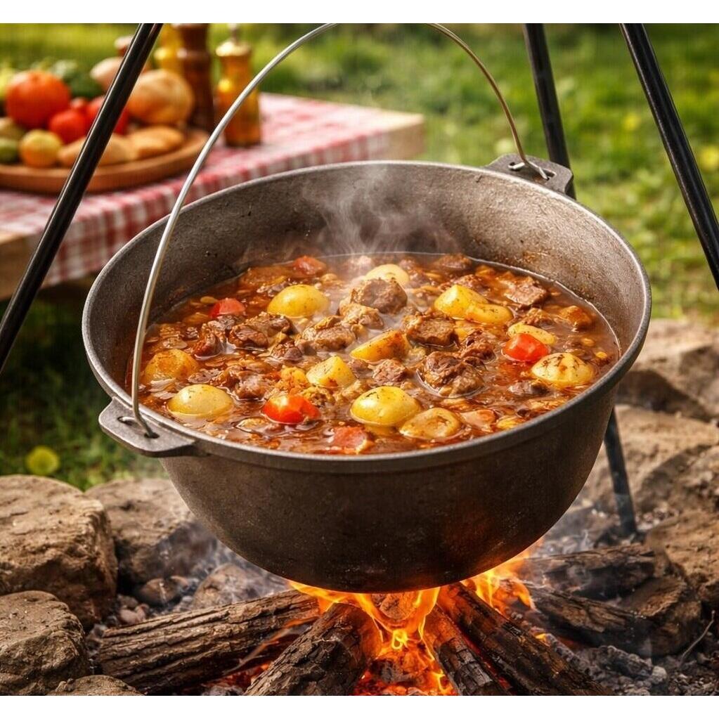 - Ceaunul poate fi utilizat atat pe foc deschis, cat si pe diverse tipuri de plite, ceea ce il transforma intr-un vas versatil, potrivit pentru utilizare in curte, la camping sau chiar in bucatarie.