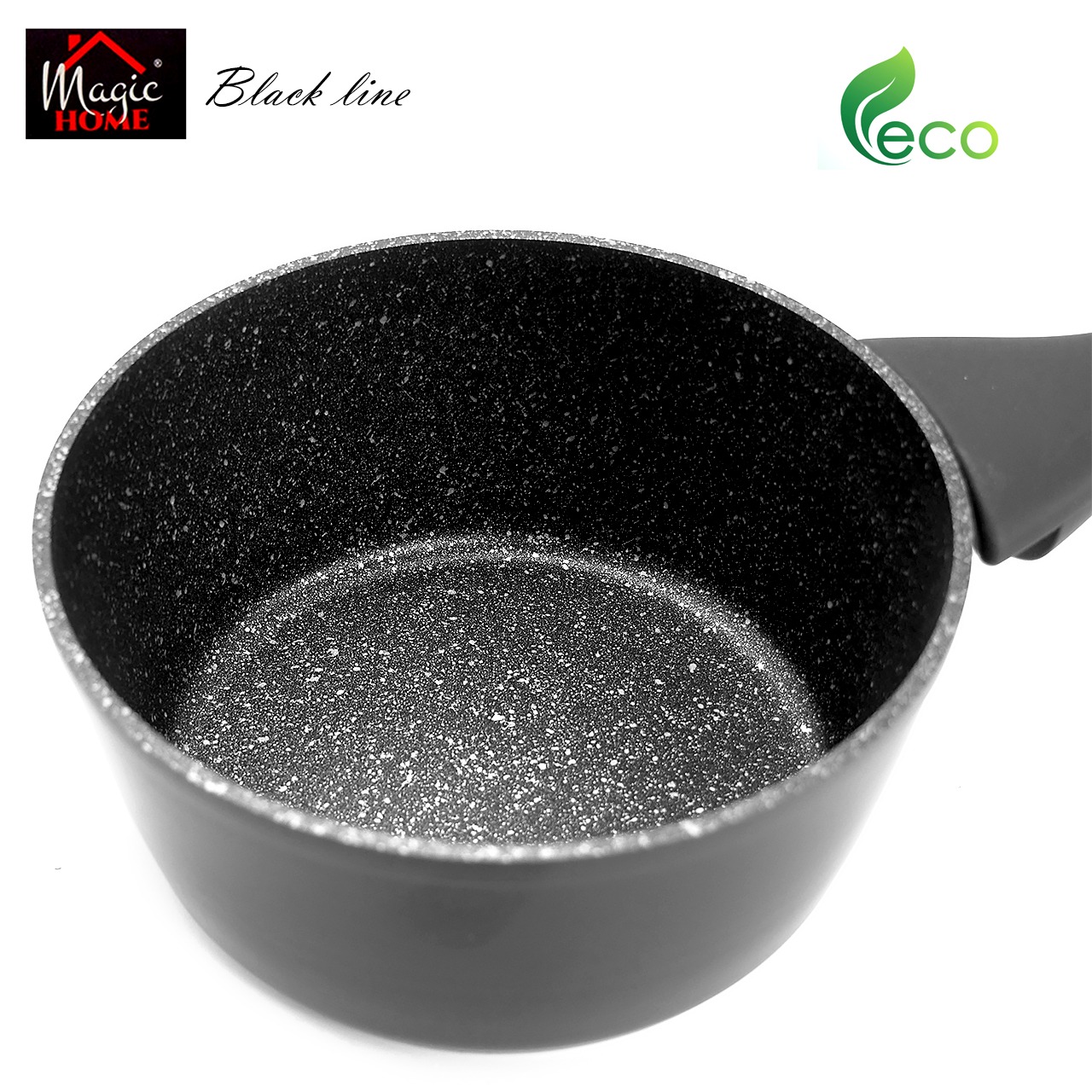 Oala cu capac sticla YENA, 16 cm, 1.2 L, antiaderenta, Black Line, MAGIC HOME