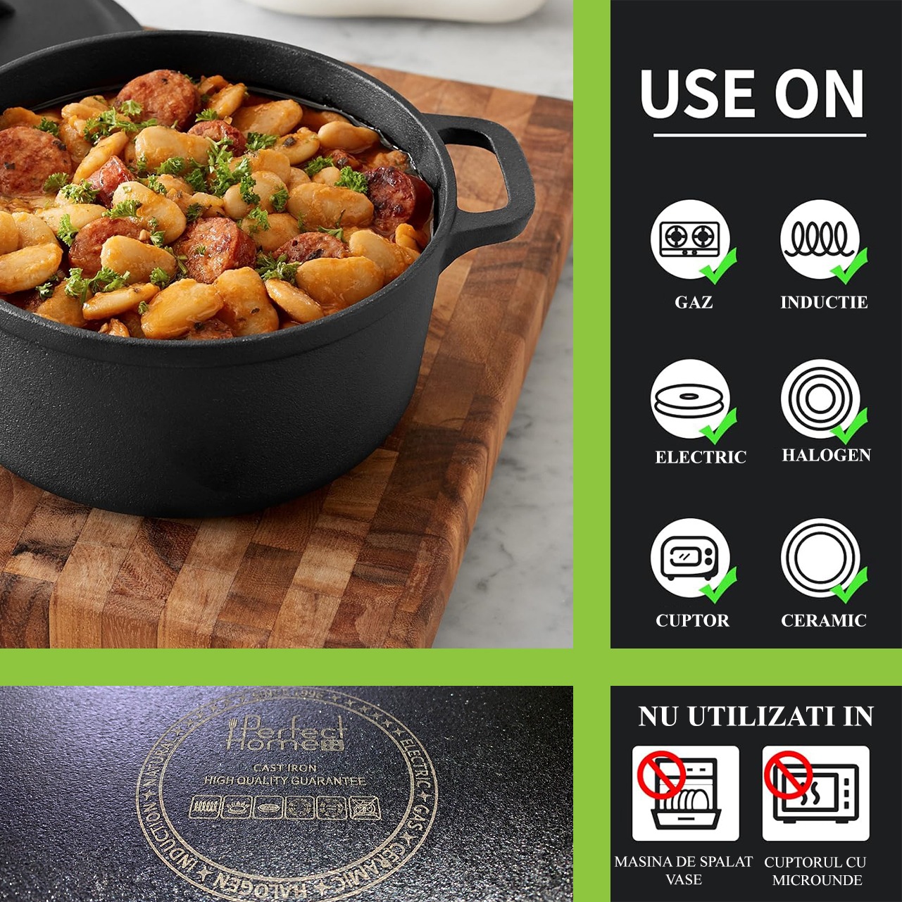 - O alta calitate remarcabila a oalei de fonta este versatilitatea. Aceasta poate fi utilizata pe diverse surse de caldura, inclusiv aragaz, cuptor sau chiar pe foc deschis. Acest lucru ofera bucatarilor posibilitatea de a experimenta cu diferite tehnici de gatire si retete, imbogatind astfel experienta culinara.
