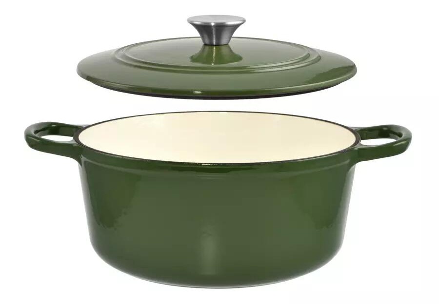 Oala de fonta emailata cu capac, maner din inox, verde, 3.5 L, Perfect Home