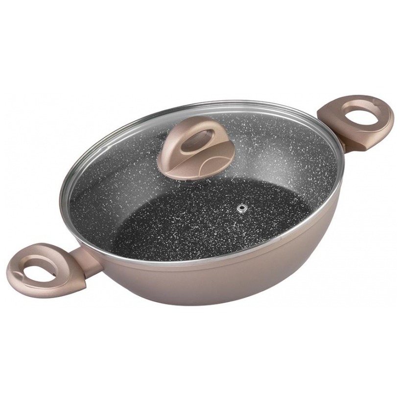 Daca iti doresti in bucatarie un produs de inalta calitate, aceasta oala este cu siguranta potrivita pentru tine! Este realizata din aliaj de aluminiu, cu suprafata antiaderenta si un strat intern de marmura. Suprafata exterioara contine un strat foarte rezistent la caldura, iar manerele sunt fabricate din inox.