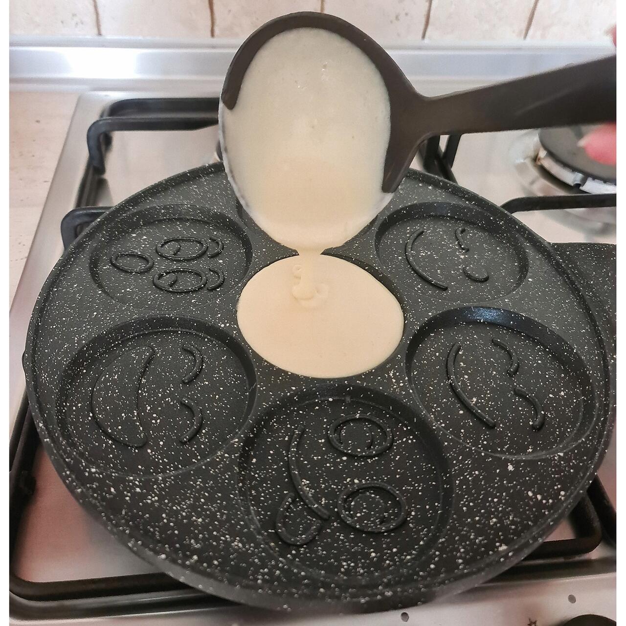 - Este decorata special cu forme care infatiseaza 7 emoji-uri diferite pentru a putea crea clatite interesante si amuzante. Cei mici le vor indragi cu siguranta si vor dori sa guste! Puteti decora clatitele cu fete zambitoare punand fructe, un pic de gem sau sirop de ciocolata.