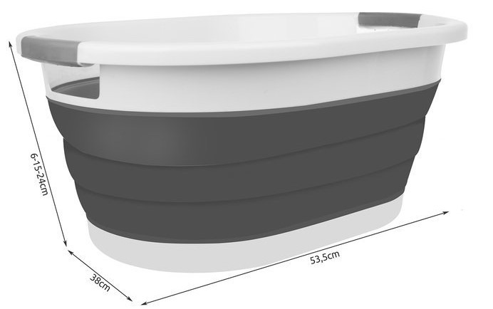 - APLICARE UNIVERSALA – cosul din silicon este universal in utilizare. Functioneaza foarte bine atat in gospodarie – de exemplu in baie, pentru rufele murdare, cat si in timpul excursilor ca o cada de baie pentru copii sau unul dintre cele mai utile articole de bucatarie, de ex. intr-un cort sau intr-o cabana de vara.