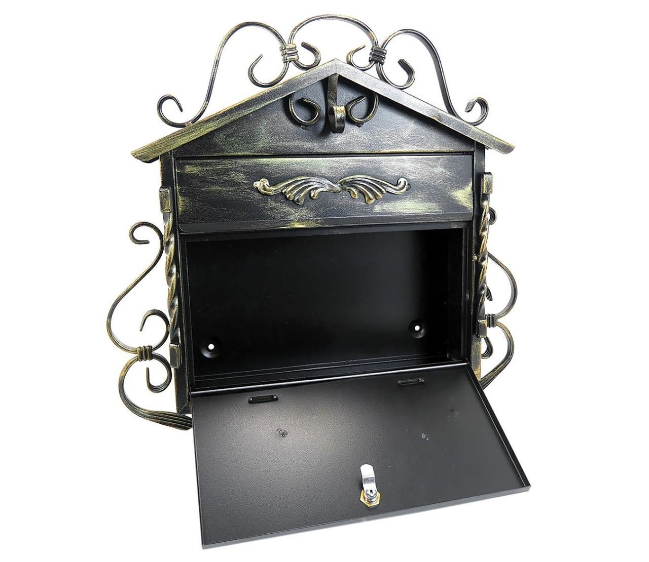 Cutie postala, cu loc pentru ziar, elemente forjate, auriu, format C4, 52.5×15.5×53 cm, Damech