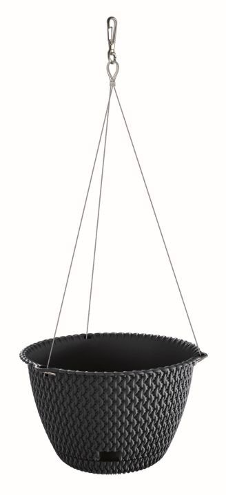 Ghiveci decorativ cu lant, rotund, antracit, 23×14.5 cm, Splofy WS