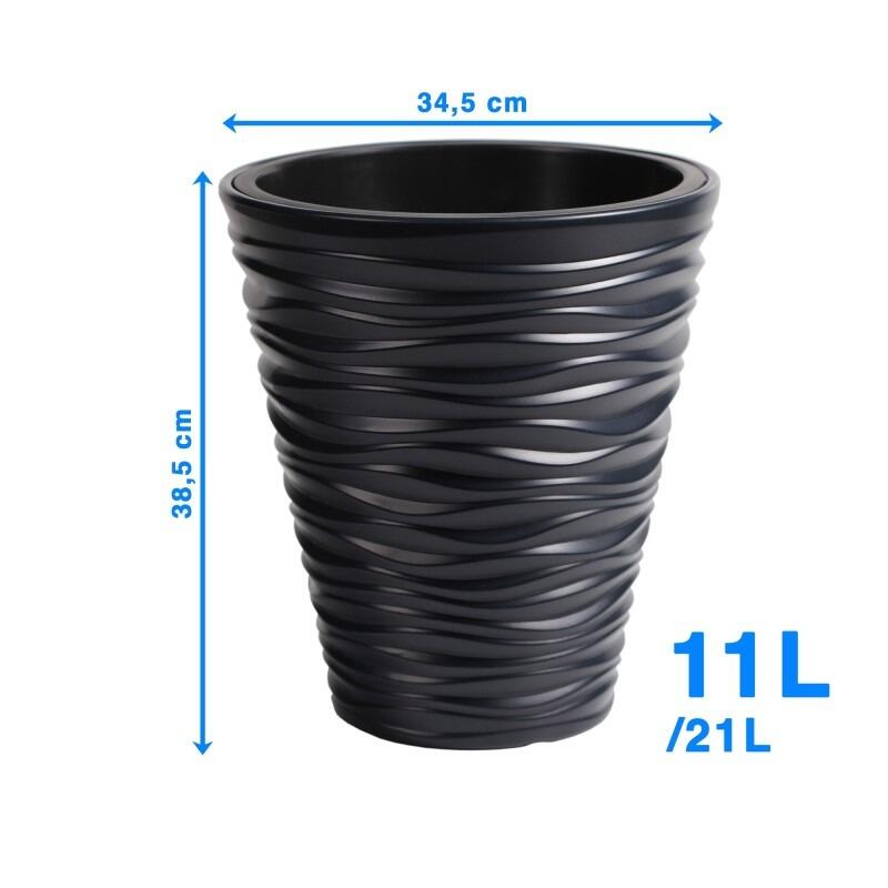 Ghiveci decorativ de flori, rotund, antracit, 11/21 L, 34.5×38.5 cm, Sand