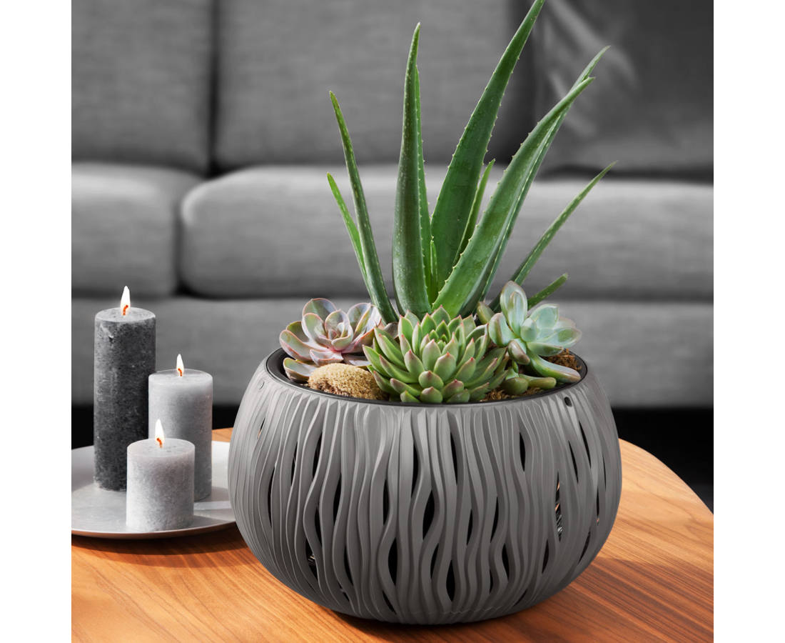 Ghiveciul decorativ de flori se incadreaza perfect atat in gradina, cat si in locuinta, pe terasa sau balcon. Adaugati eleganta, stil si propria dvs. nota speciala oricarui spatiu cu setul nostru de ghivece "all-season". Fie in interior, fie in aer liber, designul nostru este atractiv. Fabricate din polipropilena usoara, dar durabila, ghivecele sunt rezistente la inghet si caldura, facandu-le un produs ideal pentru patru anotimpuri.