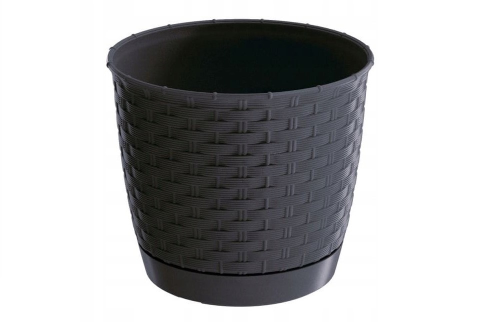 Ghiveci decorativ de flori, rotund, imitatie ratan, antracit, 1.2 L, 14.5×12.7 cm, Ratolla Round