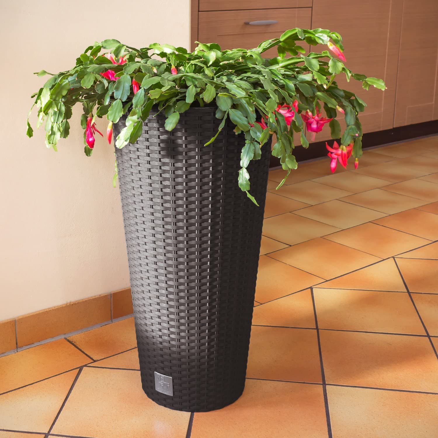 Ghiveci decorativ de flori, rotund inalt, 40×76.3 cm, maro, imitatie ratan, Rato