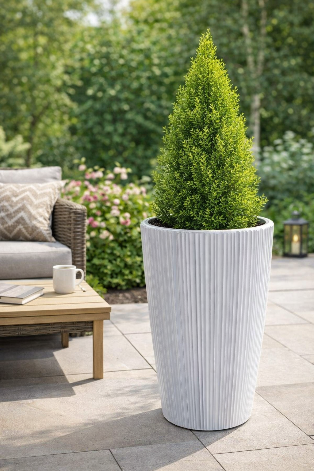 Ghiveci decorativ de flori, rotund, inalt, alb, 39×73 cm, 60/20 L, Oro