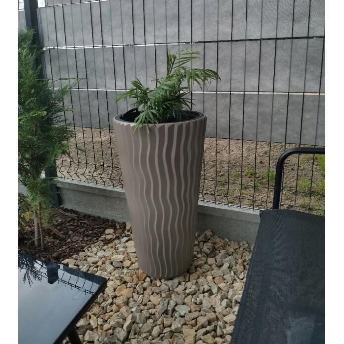 Ghiveci decorativ de flori, rotund, inalt, cafeniu, 11/37 L, 34.9×62 cm, Sandy Slim, Prosperplast