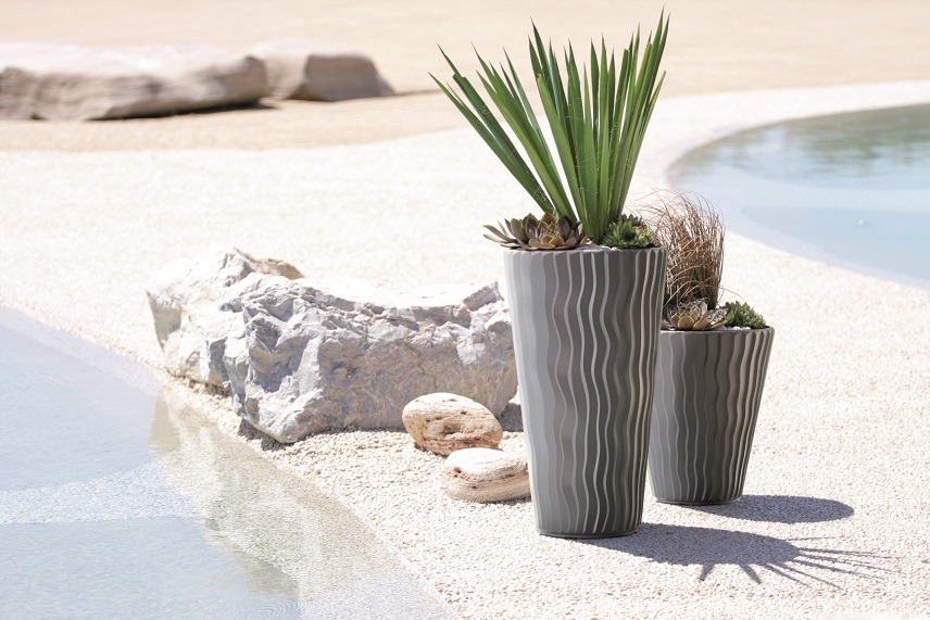 Ghiveci decorativ de flori, rotund, inalt, gri, 29.7×53.1 cm, Sandy