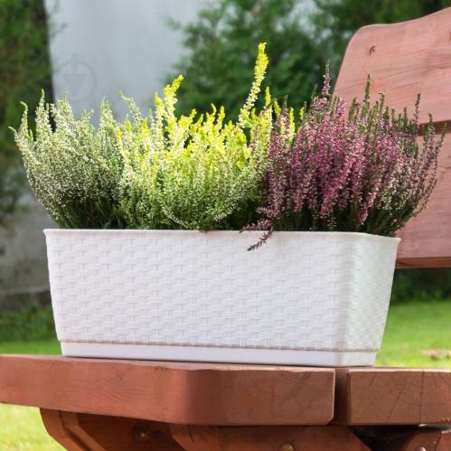 Jardiniera decorativa, imitatie ratan, alb, 12 L, 49.2×17.2×17.4 cm, Strend Pro