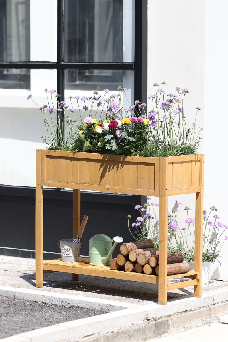 Jardiniera decorativa inaltata, cu raft inferior, lemn, 89x33x76 cm, Strend Pro