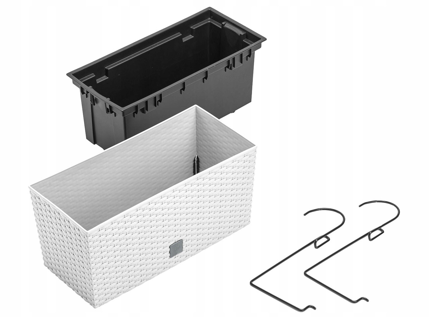 Jardiniera decorativa, suport metalic, imitatie ratan, alb, 39.5×18.5×19.5 cm, Rato Case W