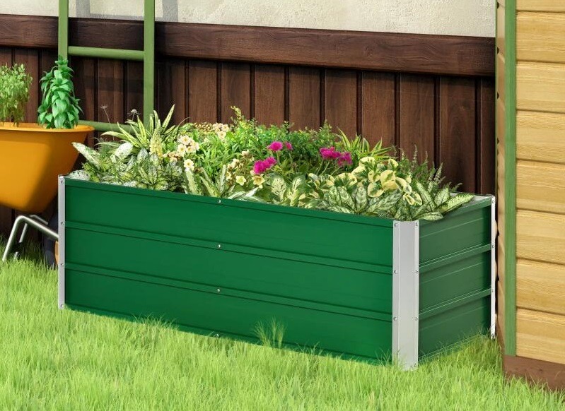 Pat/strat inaltat pentru flori, legume, din otel, verde, cu accesorii, 125x47x40 cm
