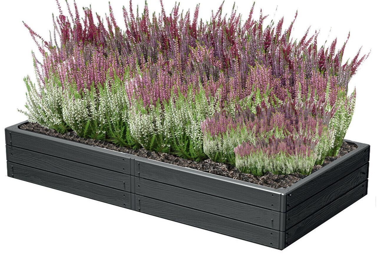 Pat/strat inaltat pentru flori, legume, din plastic, efect lemn, antracit, 149.2×75.6×25 cm, Prosperplast