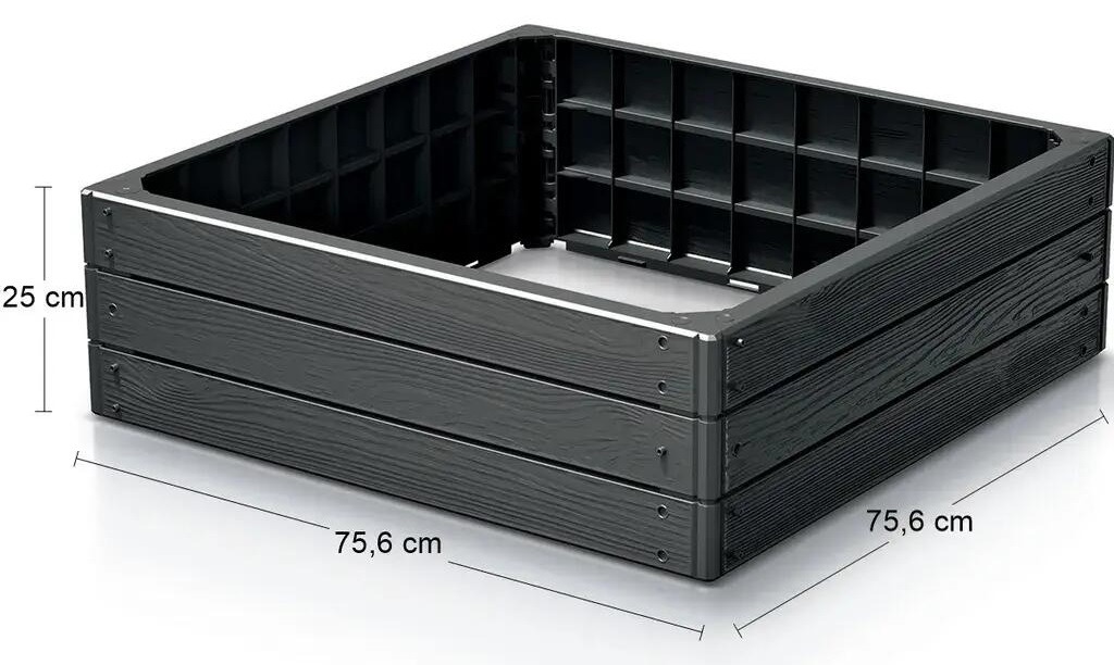 Pat/strat inaltat pentru flori, legume, din plastic, efect lemn, antracit, 75.6×75.6×25 cm, Prosperplast
