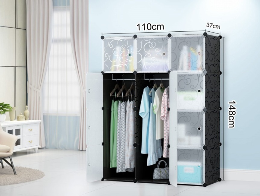 Dulap modular, Mufart, plastic, 6 compartimente si 2 spatii pentru haine, 110x37x148 cm