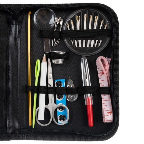- TRUSA – totul este inchis intr-o trusa neagra din materiale de inalta calitate. Datorita trusei, puteti pastra accesoriile de cusut intr-un singur loc. Le poti pune cu usurinta in geanta sau rucsac si le poti lua cu tine in calatorie.