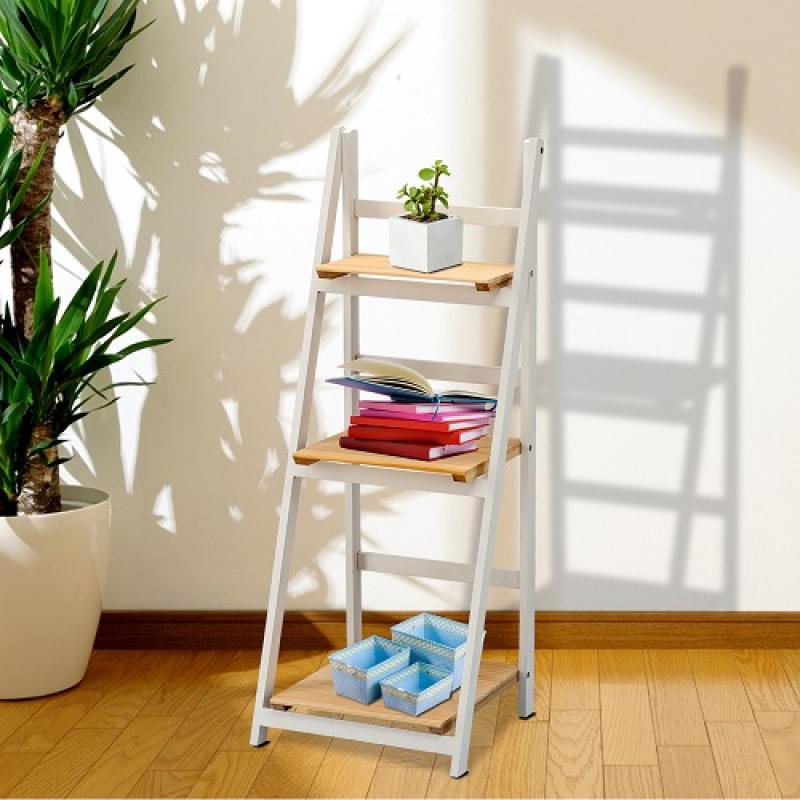 Raft depozitare, biblioteca, tip scara, pliabil, lemn, 3 polite, alb si natur, 42x39x109 cm